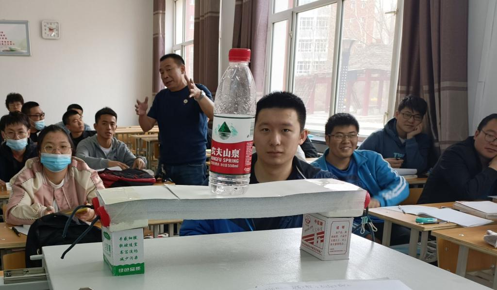 于平凡处见智慧,于生活中学知识。在《土木工程施工技术与组织》课遇上“预应力”这一难啃的大佬之时,贺老师给我们从生活中随处可见的物品—一块泡沫板、一张纸壳、两根鞋带、四个水瓶盖,组装出一个简易武器帮助同学们通过了此次难关。