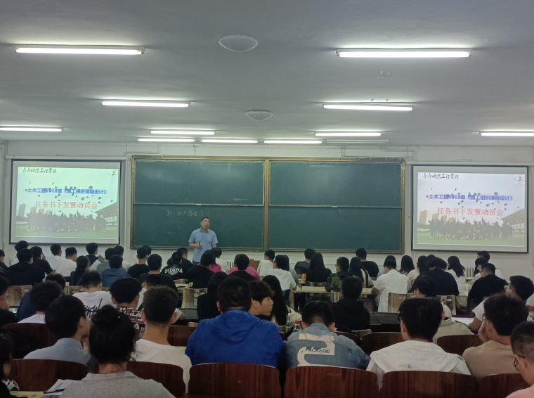为落实实践教学、实现学年实践教学目标。5月29日晚上,土木工程专业在3#1101组织召开《施工组织课程设计》启动任务书下发暨动员会,会议贺全德老师主持,土木工程专业教师张巍、王雪,土木工程专业2018级全体同学参加会议。
