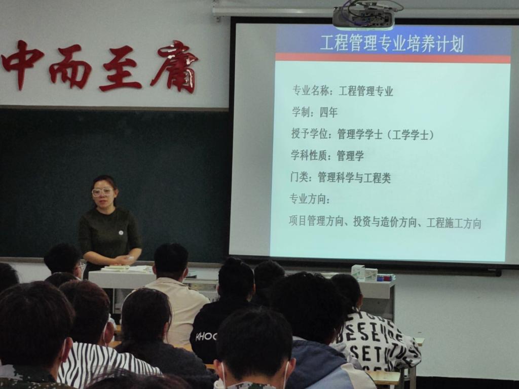 首先,建筑工程系主任陈景鑫发表了对21级新生的寄语,对新生有寄托、有要求,并鼓励全体新生尽快适应全新的大学生活,找到学习的方法。随后曲梦露专业长上台为大家详细地介绍了工程管理专业专业特色、培养目标、毕业要求及课程体系。使新生们了解到工程管理专业发展趋势、知识结构以及行业前景,并对同学们将来就业及就业方向进行了细致的解读分析。向大家说明了大学四年中工程管理专业能够培养的能力,以及专业特色活动引起了同学们的兴趣。最后,曲老师希望同学们大学四年的路能一步一步走,度过一个值得骄傲的大学四年。
