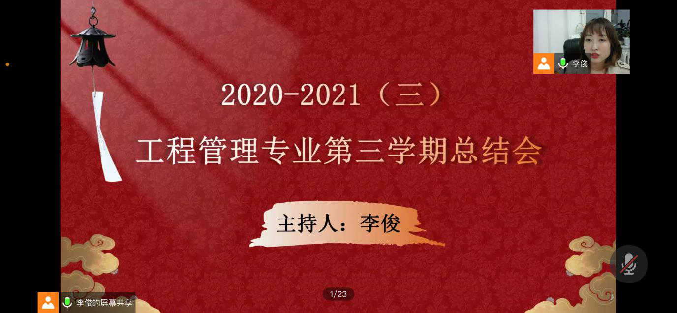 2021年9月20日晚,建筑工程系工程管理专业李俊老师在腾讯会议上召开了工程管理专业第三学期总结大会,目的是总结第三学期中同学们在实习、答辩等过程中的表现,工程管理专业专业全体老师及全体学生出席本次会议。