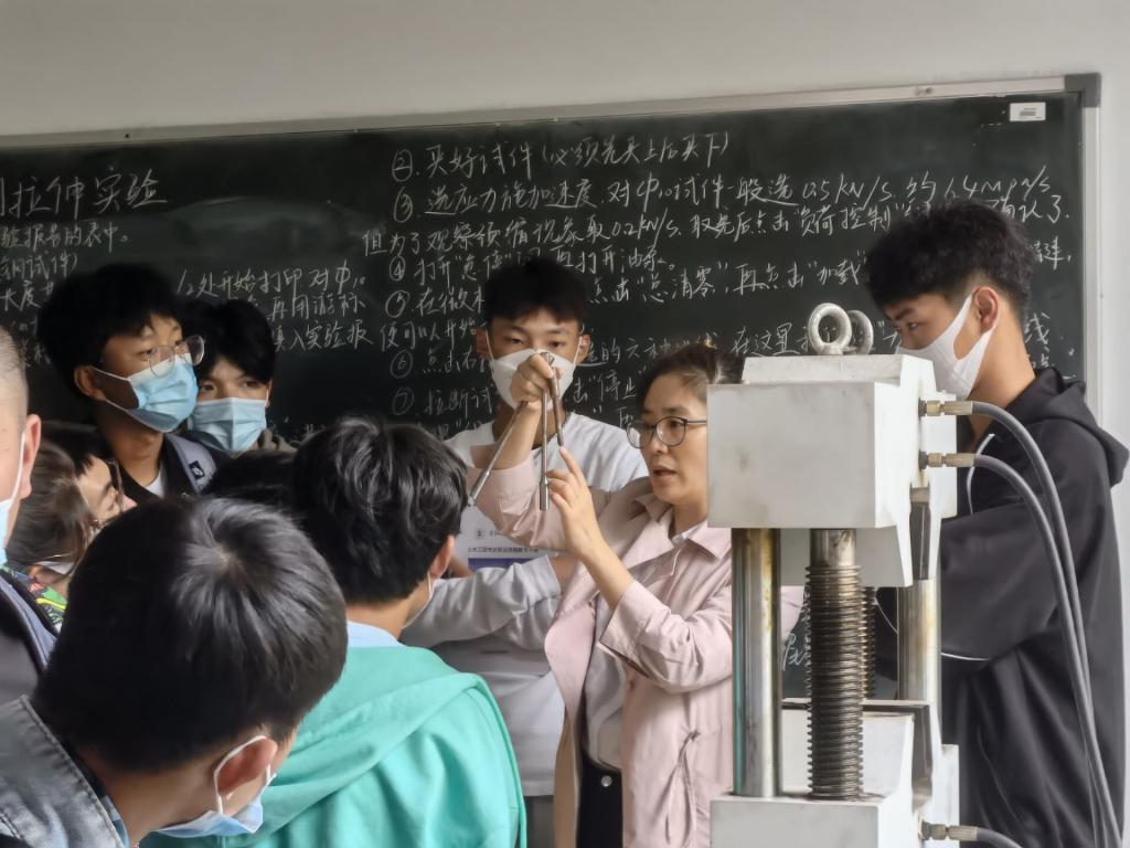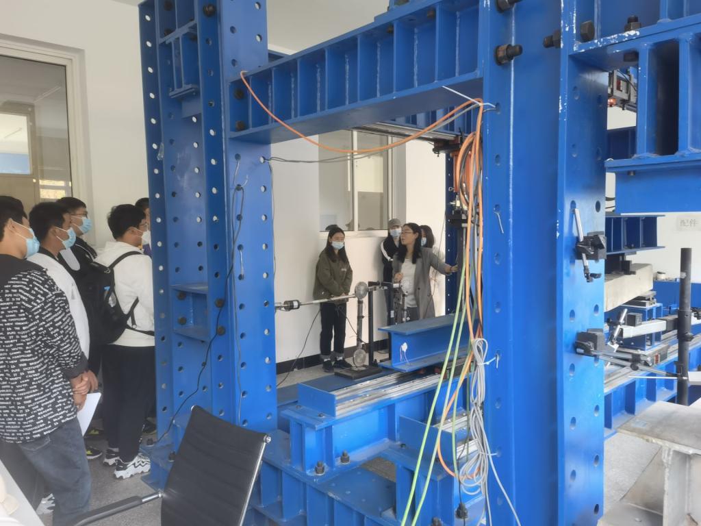 同学们在专业教师赵玖香、张晶晶、王雪、梁忠强的带领下,分别在材料力学实验室、结构力学实验室、流体力学实验室、材料实验室进行了参观学习,老师们讲、演的严谨认真,同学们听的兴致勃勃。