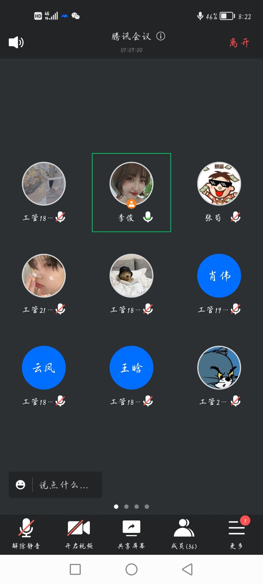 10月12日19:30,工程管理专业李俊老师为她所指导的学生召开生涯导师会,由于本次会议涉及的学生包括工管18级、19级、20级、21级,所以本次会议是利用学生课余时间进行,由于受疫情影响,本次会议采用腾讯会议线上形式。