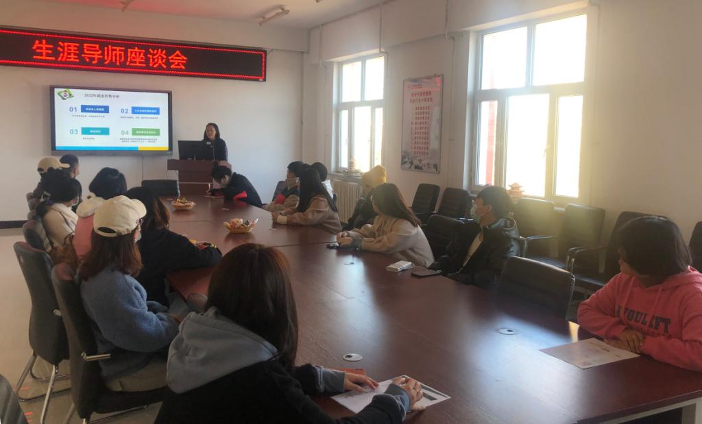 10月20日上午,建筑工程系教师李莹莹、李月凤、张怡在2#2409召开了生涯导师座谈会。会议由李莹莹老师主持,参会的土木工程专业、工程管理专业、风景园林专业2018级毕业班同学共14名。