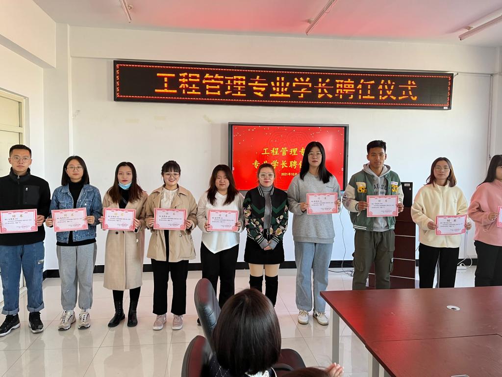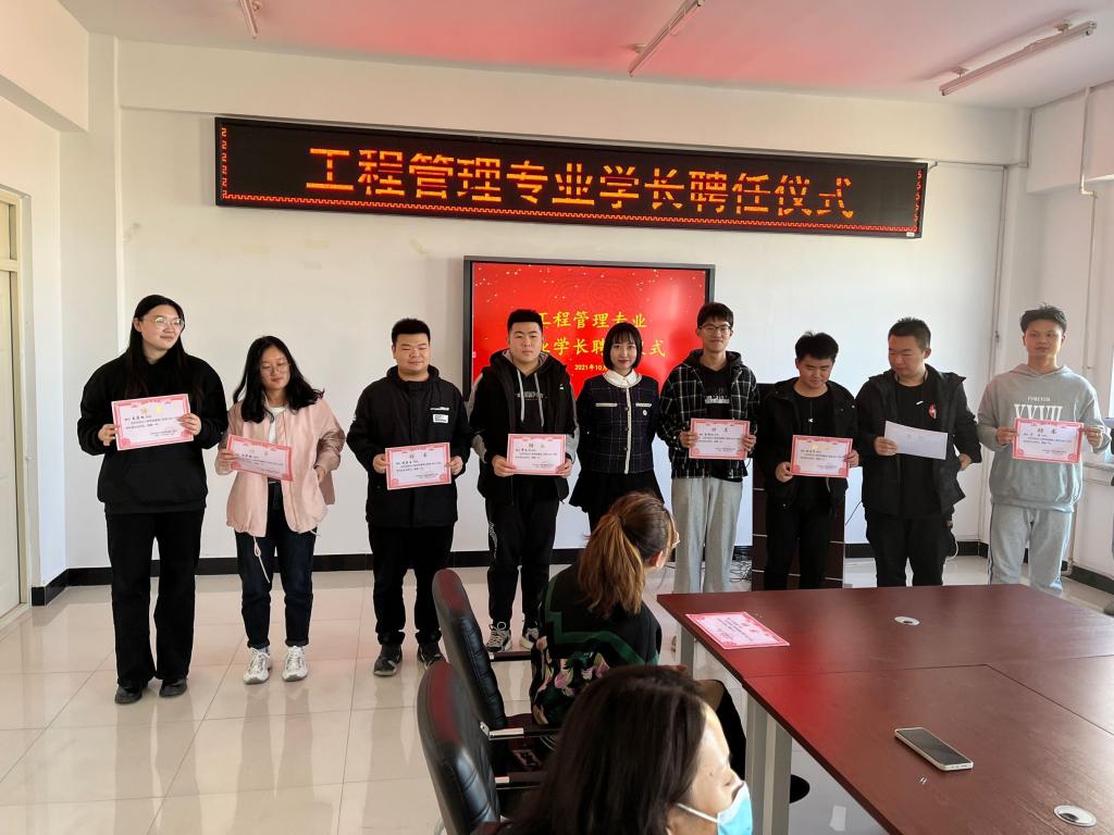 工程管理专业一直秉持着以学生为中心的教学育人理念,本次聘任专业学长,是为了起到一个良好的带头作用,在职业前瞻教育中建立老师和同学们的桥梁,同时能够以学生角度出发,走进学生的学习,生活,工作中,使他们形成良好的学习生活习惯,加强班级的班风、学风建设。并且在老师的带领,培养出一批优秀的学长队伍,在关键的时候能够挺住来,站出来,遇事能动起来,真正的为师生办实事。