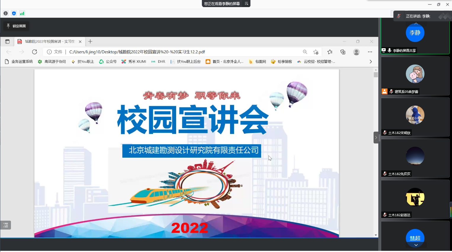 为了提高就业质量,满足就业需求,12月2日晚17点10分,建筑工程系组织北京城建勘测设计研究院有限责任公司的线上宣讲会。