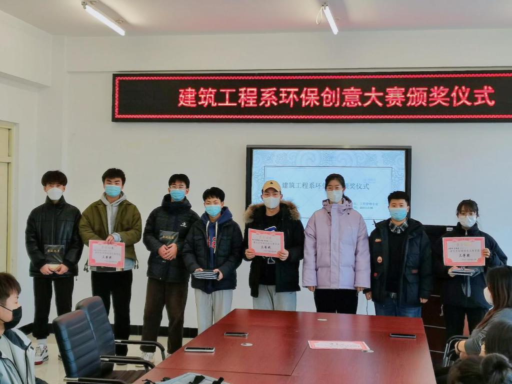 为倡导建筑行业持续绿色发展,推动新建建筑绿色高质量建设,工程管理专业特此举办了“源来是你”环保创意大赛,12月8日,大赛承办教师侯聪超老师在2号教学区2409会议室召开创意大赛颁奖仪式,各小组获奖人员、专业教师全部参会。