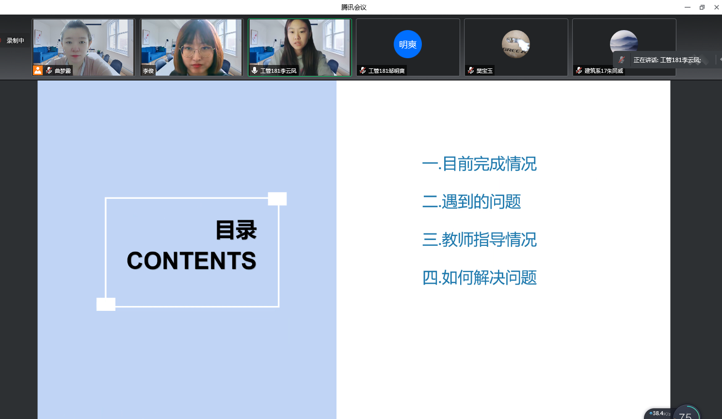 检查中,学生首先对自己目前毕业设计(论文)的完成情况进行了汇报,包括已完成内容和未完成的内容,以及存在的问题及拟解决的方法等。答辩组老师对学生的毕业设计(论文)撰写内容仔细进行了审阅,就发现的问题进行了说明和提问,并指出了进一步的修改意见。学生撰写的毕业设计(论文)符合进度要求,完成情况良好。