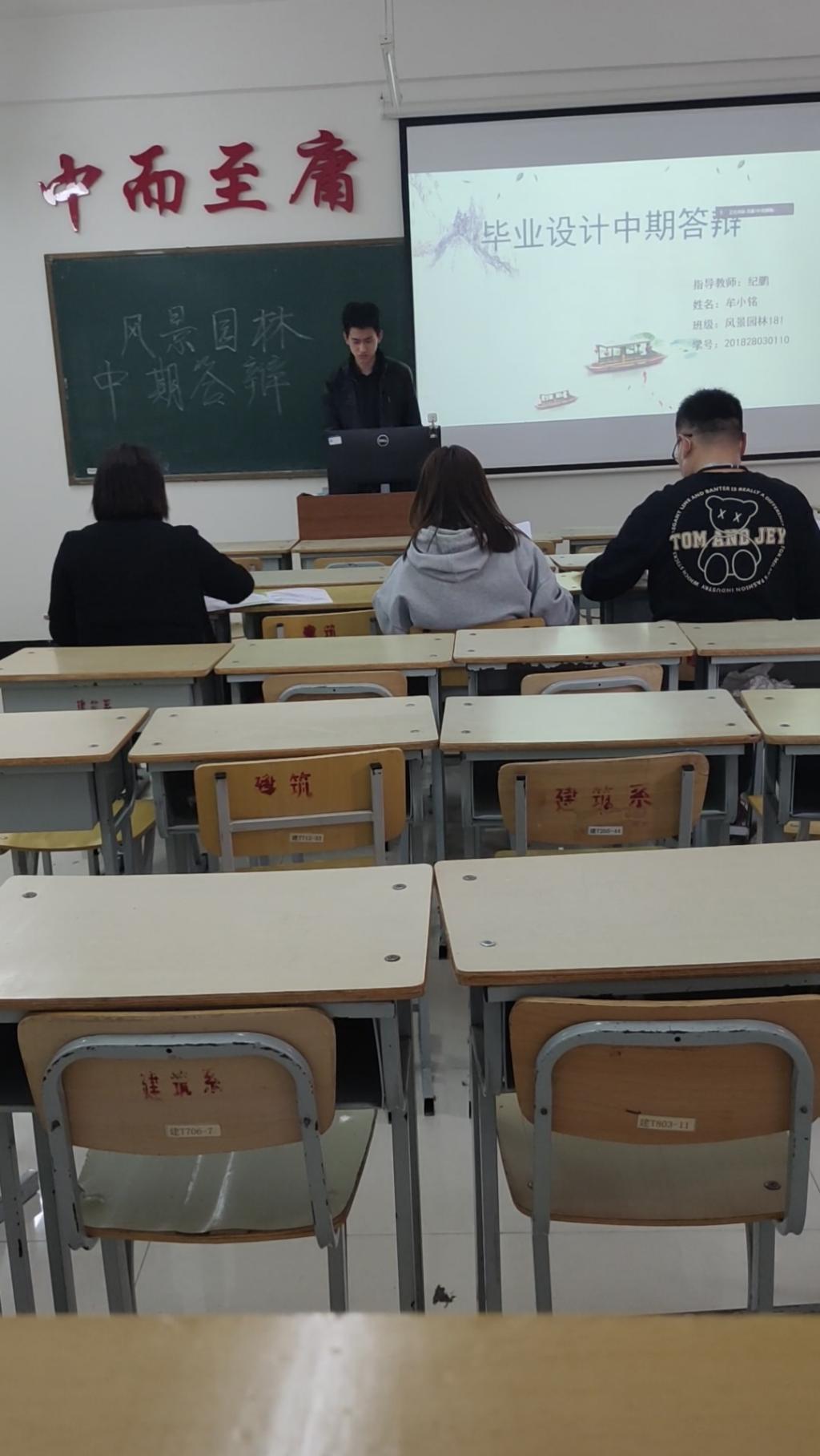 风景园林专业于2022年4月11日在二教1408召开18级毕业设计中期答辩,专业长宋兴蕾老师以及专业教师徐喜辉、袁继杰、刘小松莅临指导本次答辩。本次以抽查的形式进行中期答辩。