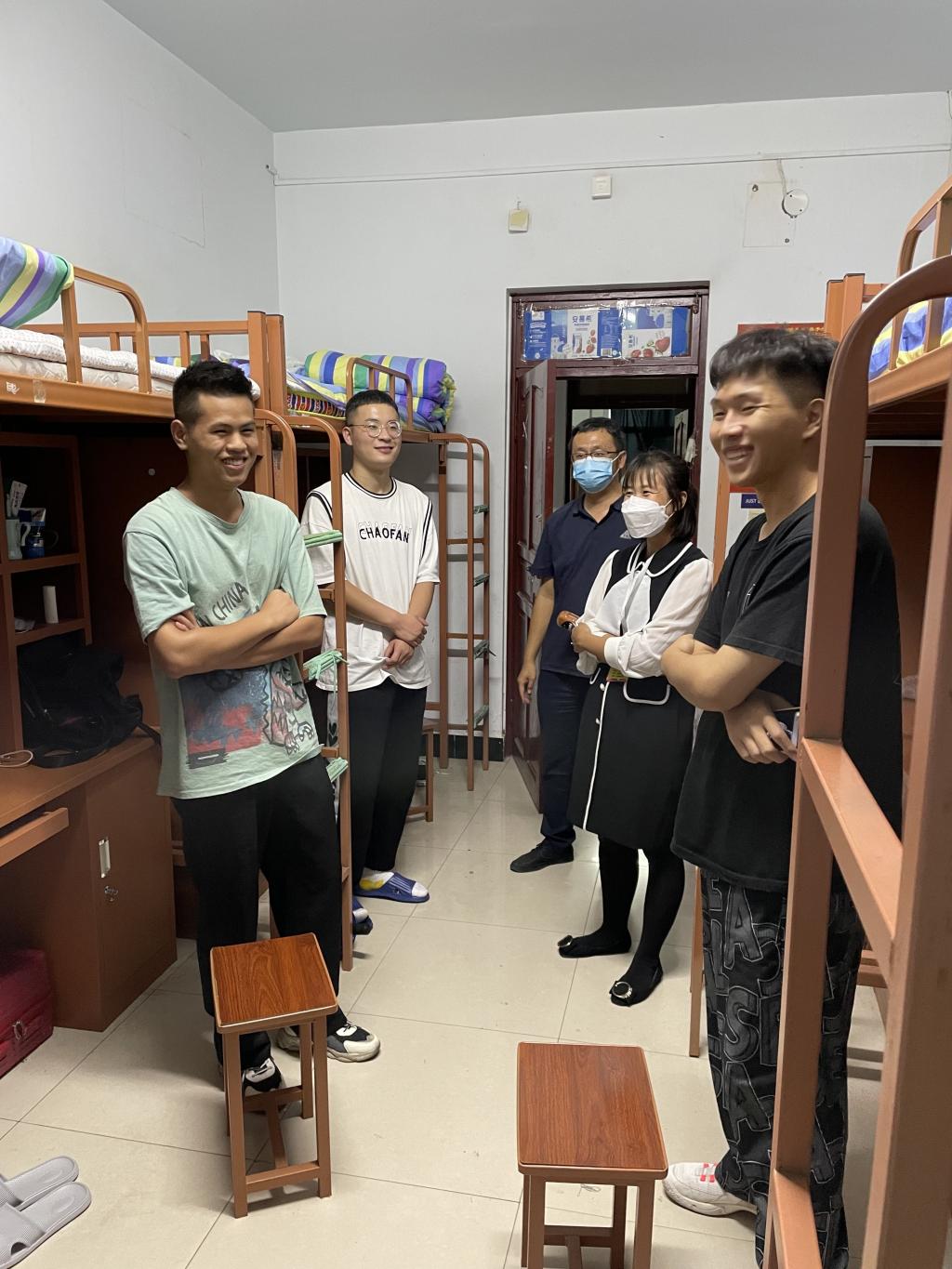 在走访的过程中,老师们亲切地与同学们打招呼,并询问同学们来自哪里,衣食住行、生活是否习惯等方面的问题。同学们纷纷表示正在积极地适应学校的生活环境,适应大学生活,转变身份。陈主任在与同学们交谈中提道:“尽管大家来自不同的地方,有着不同的生活习惯,但如今来到了一间寝室,就是一个整体,要互帮互助,互相学习,凝聚每个人的力量,营造积极向上的宿舍环境,度过一段充实难忘的大学生活”。徐主任在和学生的交谈中提到:“学校会尽最大努力满足学生们的学习条件,大家要认真学习,互帮互助,不同专业之间可以多多交流”。