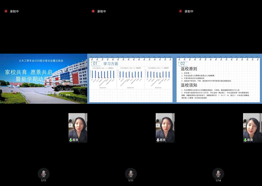 为加强家校联动,在开学之际保障学生返校过程中的安全,帮助家长更好了解校情及学生动态,以便更好地打造家校一体全方位育人平台,建筑工程系辅导员蔡爽于2022年9月2日组织召开土木工程专业2020级云家长会暨云班会线上会议,土木工程专业2020级全体家长参会。