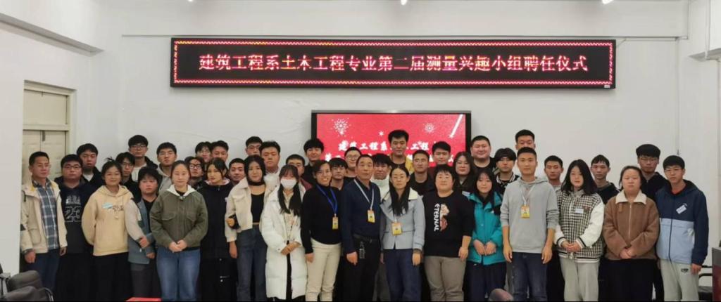 2022年11月2日晚5点,建筑工程系测量兴趣小组在2号教学区2401召开本次第二届测量兴趣小组聘任仪式。土木工程专业负责人钟美慧、专业教师贺全德、王雪、张晶晶、李春雨,及测量小组全体人员参加。
