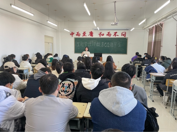 为进一步推进我校建筑工程系毕业生就业工作,不断提高就业工作的质量和水平,努力实现毕业生充分就业,建筑工程系工程管理专业于2023年3月9日在2号教学楼2511召开2019级就业指导会。会议由工程管理专业长曲梦露主持,辅导员蔡爽老师、全体生涯导师及2019级全体学生参加。