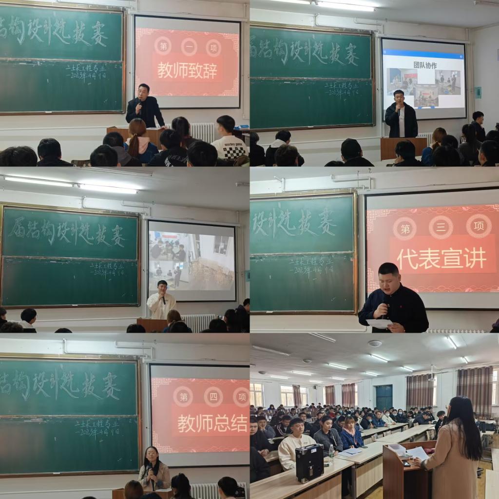 为进一步激发学生对土木工程专业的学习兴趣和积极性,促进学生创新能力的提高,激发广大学生热爱专业、刻苦学习、勇于拼搏的精神,积极推动我校土木工程专业建设,建筑工程系土木工程专业于2023年4月11日晚召开土木工程专业召开结构设计选拔赛启动仪式,土木工程专业教师贺全德、王雪、何敬峰出席会议,全体参赛人员参会。