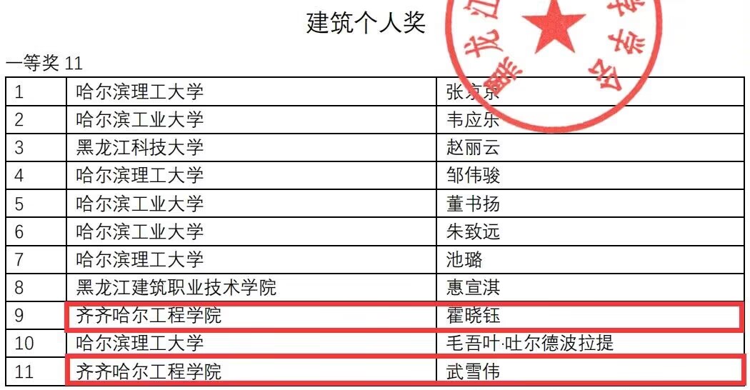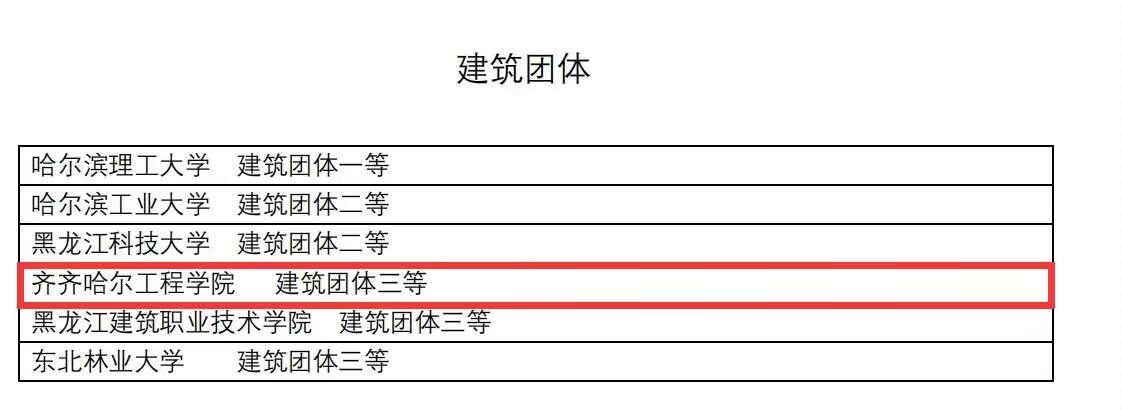 近日,建筑工程系李俊、钟美慧两位老师带领学生参加了第十四届黑龙江省“龙江杯”大学生先进成图技术与产品信息建模创新大赛暨第十六届全国大学生先进成图技术与产品信息建模创新大赛黑龙江省级预选赛,在比赛中,荣获个人一等奖2名,个人二等奖8名,个人三等奖6名,荣获建筑类团队三等奖,实现了建筑工程系在该项赛事成绩的突破。