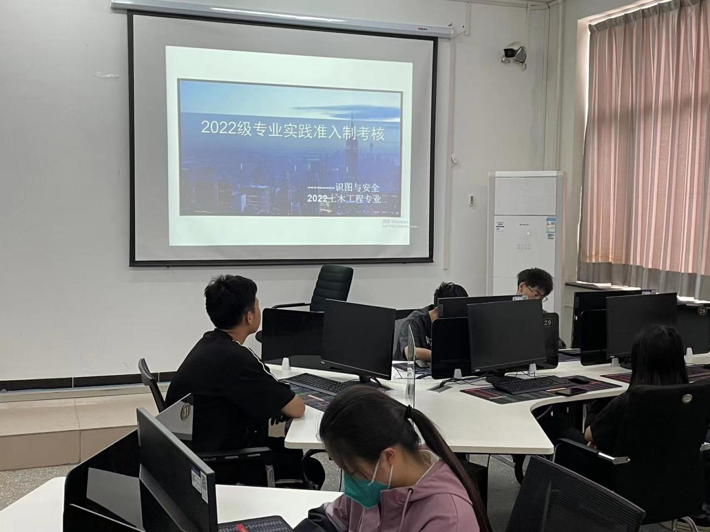 为做好2023年专业实践学期安全准入工作,确保准入学生专业水平满足工作要求,齐齐哈尔工程学院建筑工程系土木工程专业在3教1201、3202、3208和3209组织开展实习人员准入考试,本次准入考核人员为土木22级全体学生,按照“干什么、考什么”的原则,重点考察学生安全、识图和测量三方面的能力。