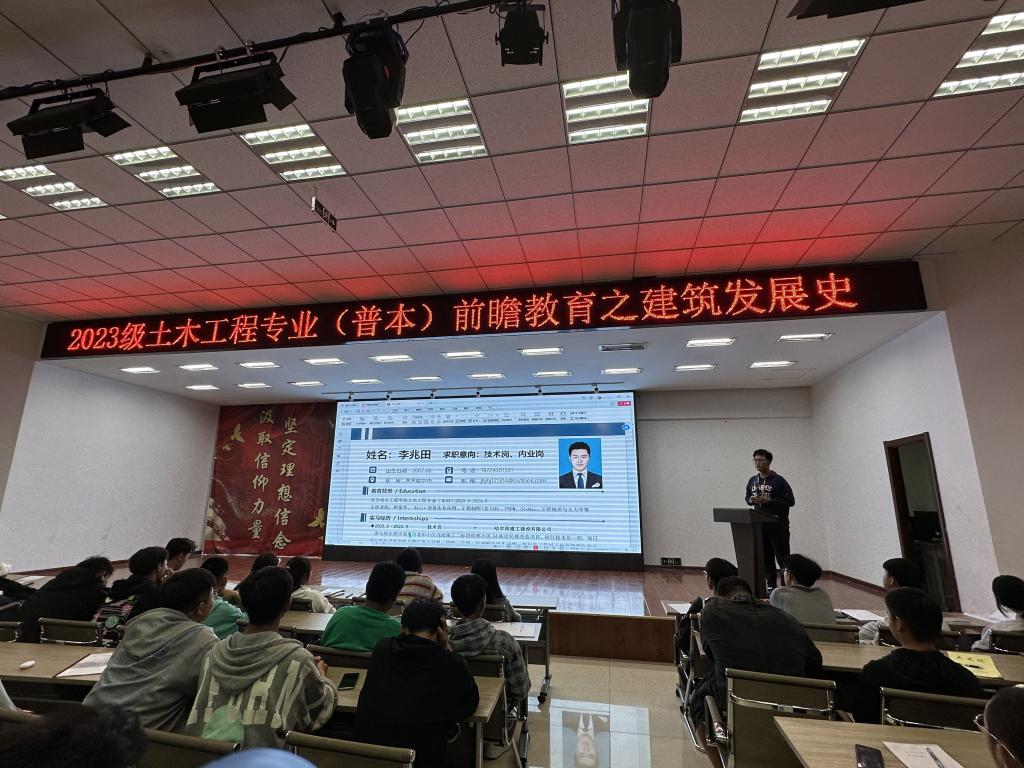 为了使学生尽快融入大学生活,培养学生专业兴趣、强化专业意识、树立专业目标,土木工程专业于2023年9月18日晚在二教2508会议室召开“巧手匠心、意蕴之美”建筑发展史主题前瞻教育,本次讲座由土木工程专业教师张晶晶老师主持,土木工程专业全体23级新生及土木202班李兆田同学参会。