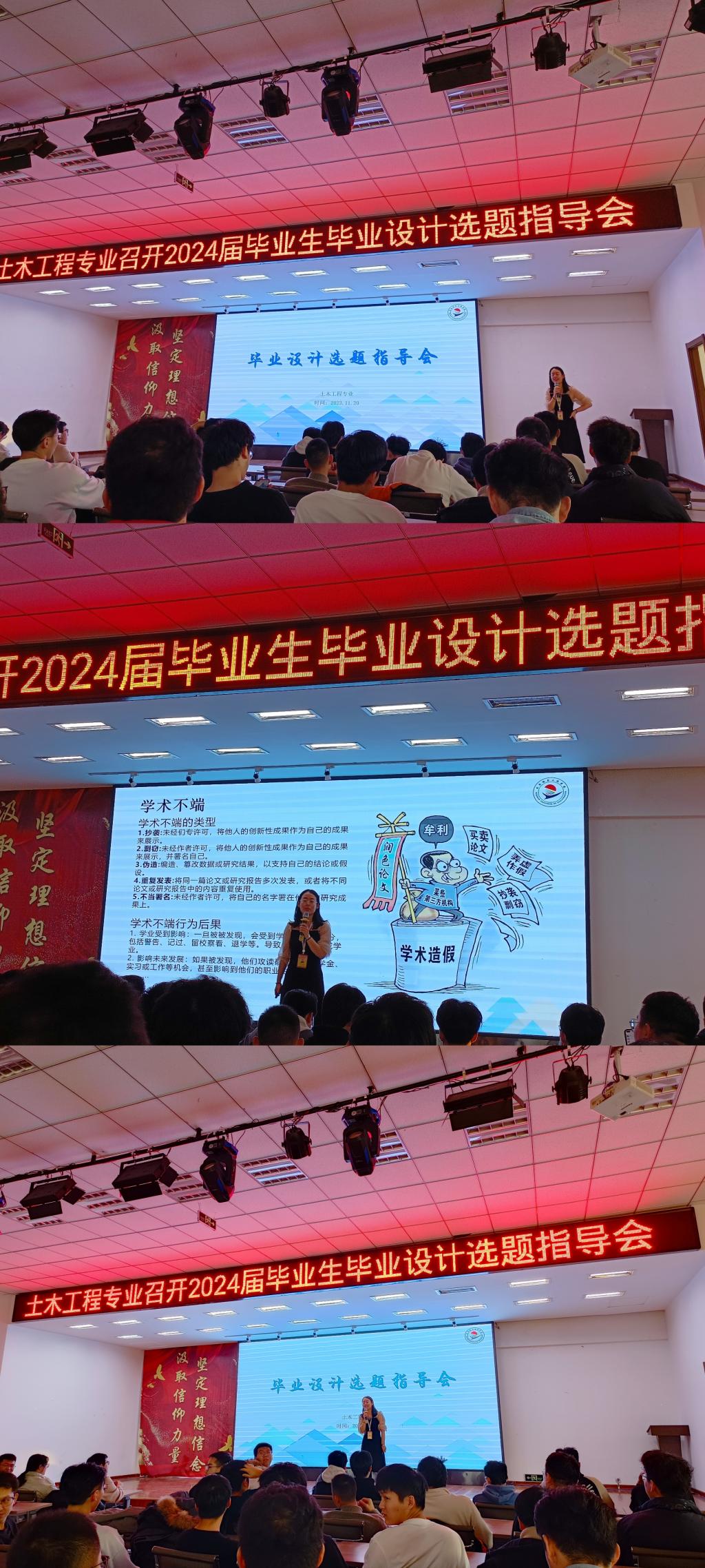 大会伊始,土木工程专业教师王雪老师为毕业生们详细解读了毕业设计的选题方向、研究内容和注意事项。王雪老师强调,选题是毕业设计的关键环节,需要充分考虑专业背景和研究能力等因素。同时,他们还提醒毕业生们要注意题目的实践应用价值和研究价值,为未来的职业发展打下坚实的基础。