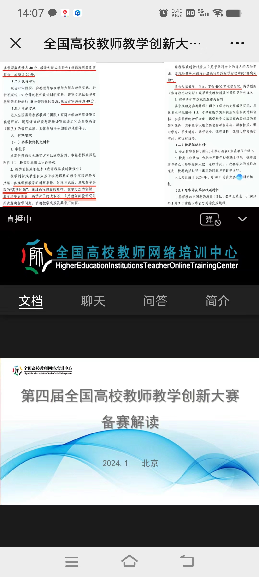 此次培训详细解读了大赛的背景、目的和参赛要求,同时也分享了一些备赛技巧和经验,进行精准复盘:往届获奖选手及评委视角下的教学创新大赛。通过这些内容,使选手解到了备赛过程中的一些细节和注意事项。通过学习了解赛前准备工作具体细节,上交材料的分值比例分配,厘清痛点问题,清晰解决问题,实例创新举措、聚焦问题解决。其中关于实录视频一定是已有框架报告,在进行实录,这样才能各点对应,让选手知道主线一定要清,且有真东西,可以不多但要有。7日下午通过观看哈尔滨工程大学李明伟教授的讲解,参赛选手了解了课上课下翻转项目进阶式教学方法及课程思政案例教学,教学环境的创设包括在线课程、数字教材、虚仿平台等及教学资源建设情况等,围绕课程的创新有很大的成果。