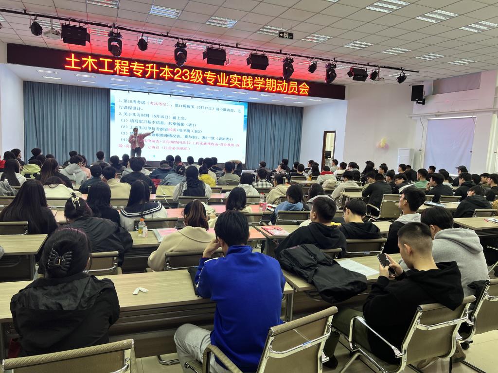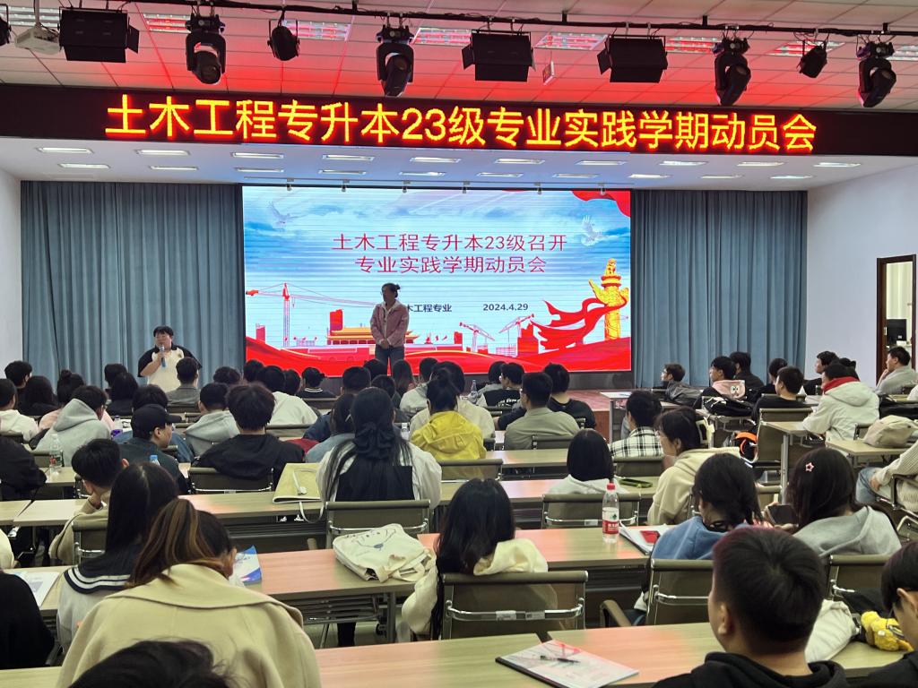 4月29日中午12:30,土木工程专业在2号教学区2508会议室召开土木工程专升本23级专业实践学期动员会。会议由土木工程专业教师张晶晶主持,土木工程专业长钟美慧老师以及土木工程专升本23级全体学生参会。