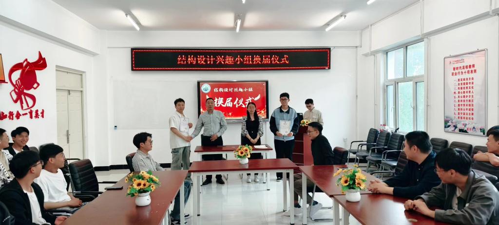 此次换届仪式完美谢幕,通过本次换届仪式充分展现了新一届骨干成员的认真负责的工作态度与拼搏进取的精神风貌。加强了结构兴趣小组成员们之间的交流,带动了同学们对专业的热忱,进而提高专业知识水平和实践动手能力。相信土木工程专业将会在接下来的学习和专业竞赛中百尺竿头更进一步。