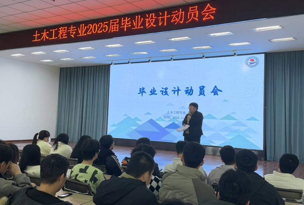 11月1日,建筑管理工程系土木工程专业在二号教学区2508会议室召开2025届毕业设计动员会,专业教师王雪主持,专业负责人钟美慧、专业毕业设计指导教师以及2025届全体学生参加本次动员会。