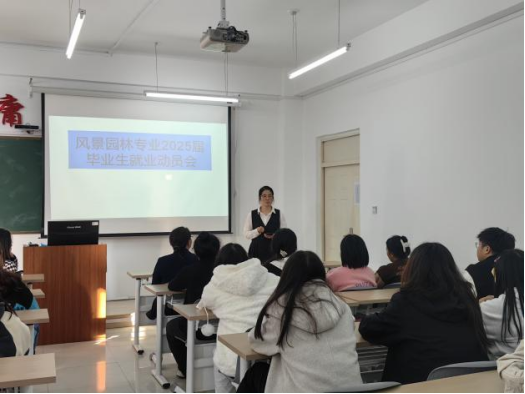 10月24日,风景园林专业于二号教学区1304教室召开2025届毕业生就业动员会,专业教师赵玖香、辅导员宋雪微和全体2025届毕业生参加会议。会议由袁继杰老师主持。