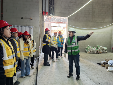在游泳馆,学生们看到了正在铺设的水管以及防水混凝土的应用。同时,热熔的防水材料也让大家了解到现代建筑防水技术的先进之处。这些知识的学习,为学生未来在景观设计中的水景部分提供了宝贵的经验。