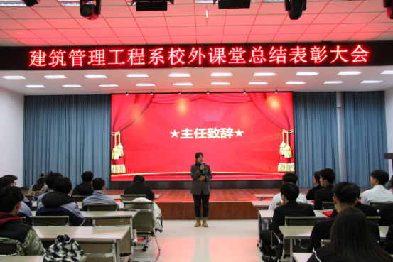 2024年将过,在此关键时期,为全面推进学校实践基地、知甘堂重点项目建设,建筑管理工程系75名学生,40余名教师的努力下,建筑管理工程系校外课堂以决战决胜姿态打好全年“收官战”,27日晚,于二教2508会议室隆重举行校外课堂总结表彰大会。全系领导、各专业负责人、生涯导师,以及校外课堂全体100余人共同参加了此次大会。