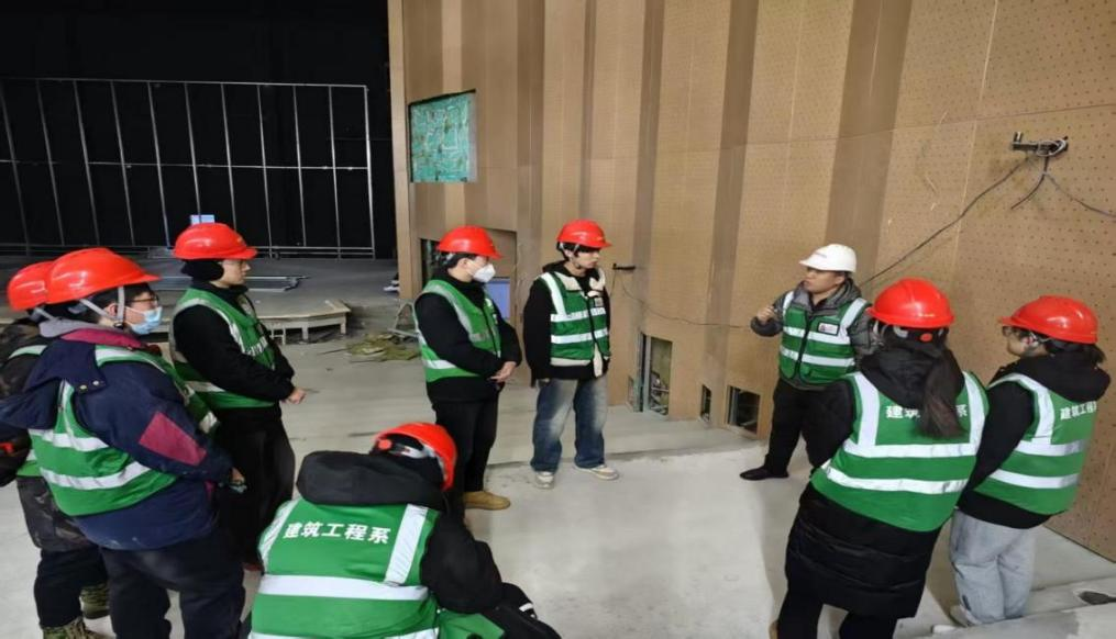 建筑管理工程系产业副主任贺全德,专业教师徐喜辉为同学们讲解人民会堂精装的整体流程,在现场实践中学习,并让同学们发现问题,解决问题,在实践中学习掌握真本领。