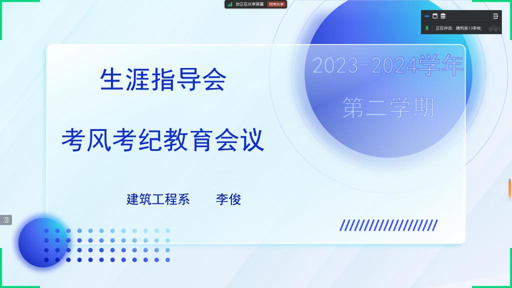 6月2日19:40,生涯导师李俊在腾讯会议上为召开考风考纪教育会议,李俊老师生涯指导的全体同学参加了本次会议。