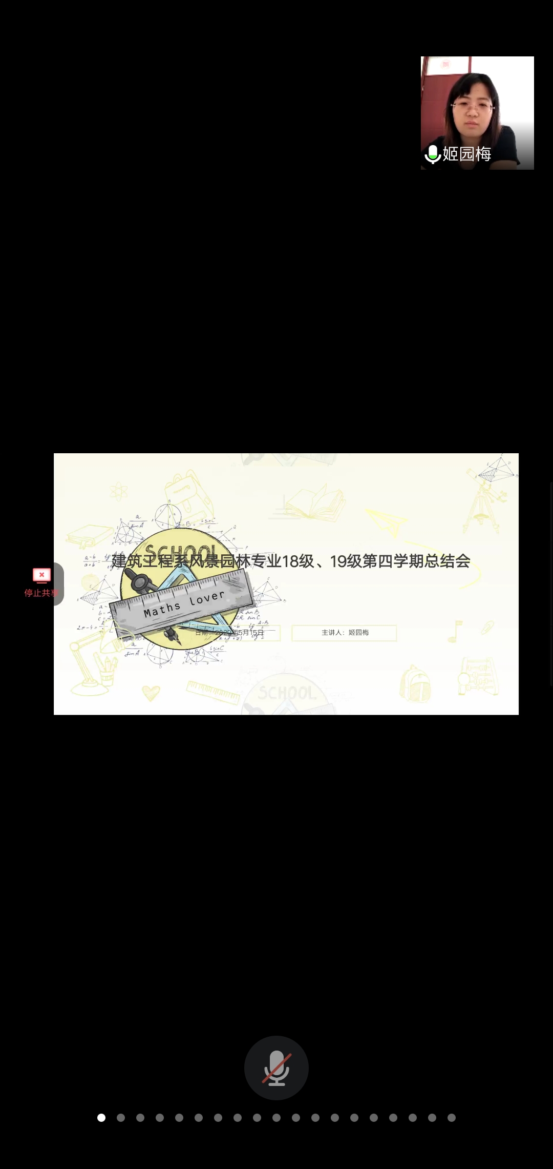 2019-2020年度第四学期已经结束,建筑工程系组织风景专业18级、19级召开第四学期线上总结会,此次线上会议由风景园林专业辅导员姬园梅主持,风景专业18级、19级全体同学参加。