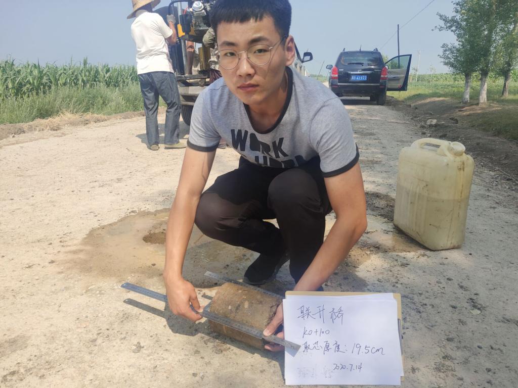 这次实习,是我第二次接触施工工作,在工作的时间里,在专业检测工程师的指导下我认真努力的学习和自我完善:为以后的工作道路打下我一生最坚定的基础,为我以后的生活打下最坚定的信念。上周主要完成的实习任务是龙林公路上面层取芯实验,按照实验规范,每500米取芯一次,每次左幅右幅进行穿插取芯,取芯完成后回到实验室对芯样进行检查工作,预计本周完成龙林公路上面层取芯资料整理工作