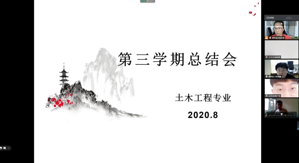 8月21日下午,土木工程专业线上召开2019-2020学年第三学期总结大会,会议由钟美慧老师主持,专业全体师生参加会议。