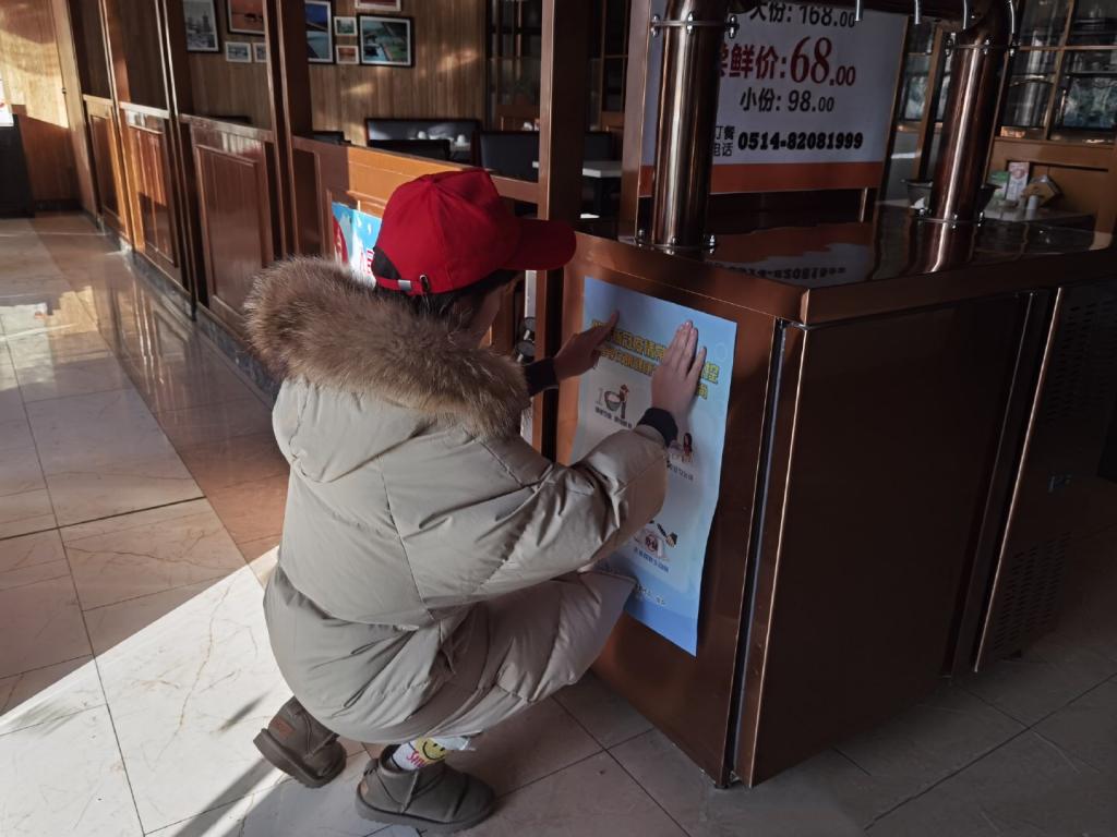 2021年1月11日上午,JZ—GY128小组成员于晓飞、原浩、郑烨弘、刘琳四名成员在齐齐哈尔市依安县西北社区展开公益活动。