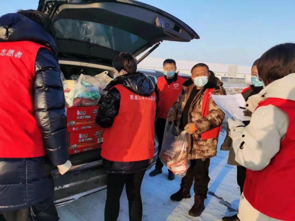 2021年1月11日上午,JZ-GY122小组成员赵睿,樊俊男,周旭,由申奥四名成员在哈尔滨志愿中心进行四学期公益活动。