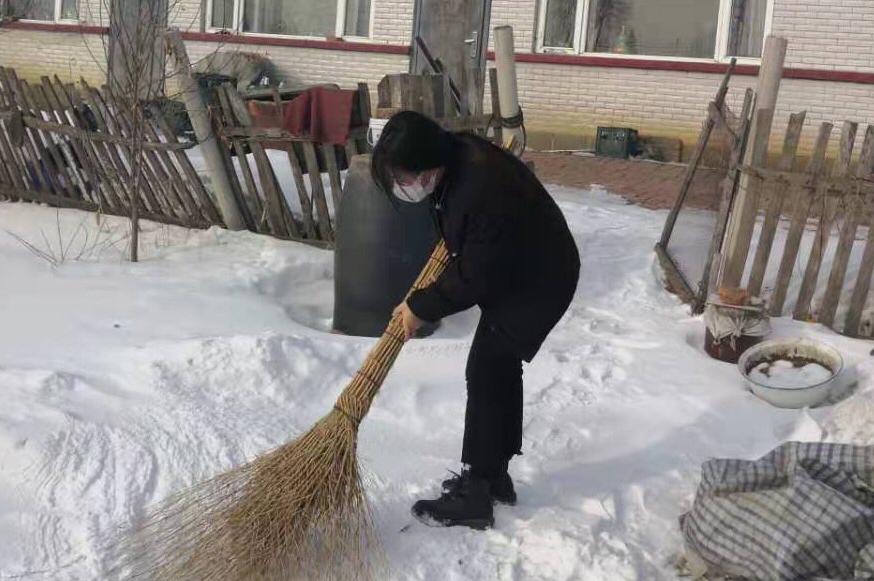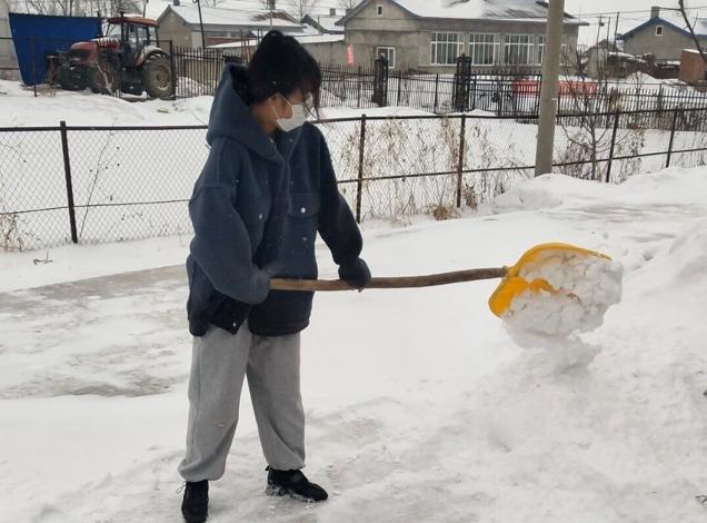 近期黑龙江省疫情形势逐渐严峻,原计划的公益活动受到一定影响。由于五常市连续降雪,为了避免积雪给交通和行人带来的不便,JZ-GY019小组工管201李静妍、工管202李雨蒙和助产202张东棋于2021年1月20日在各自家附近开展清雪这项公益活动。