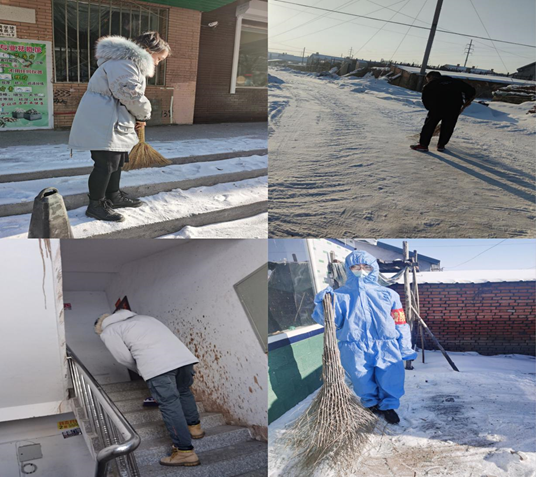 2021年1月30日上午,JZ—GY032小组成员走进各自社区,进行清扫积雪、打扫楼道活动。小组成员充分发挥了不拍脏,不怕苦,不怕累的品质。