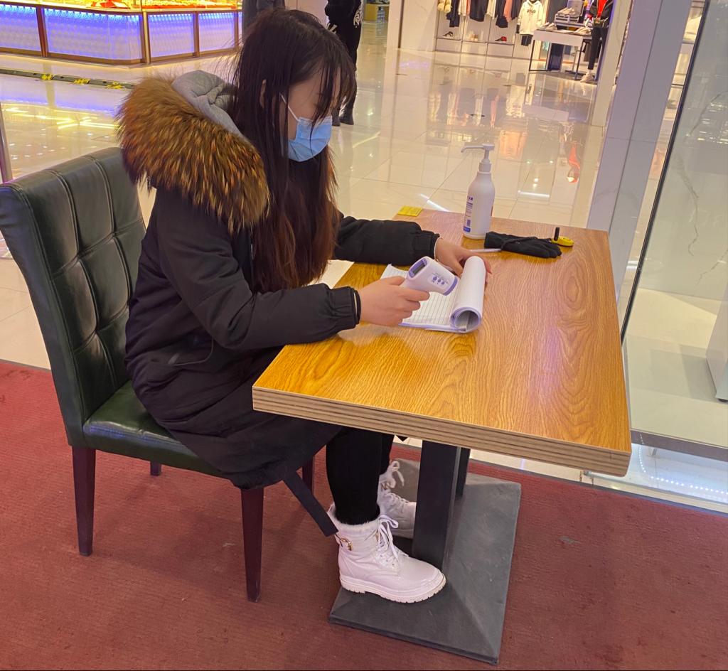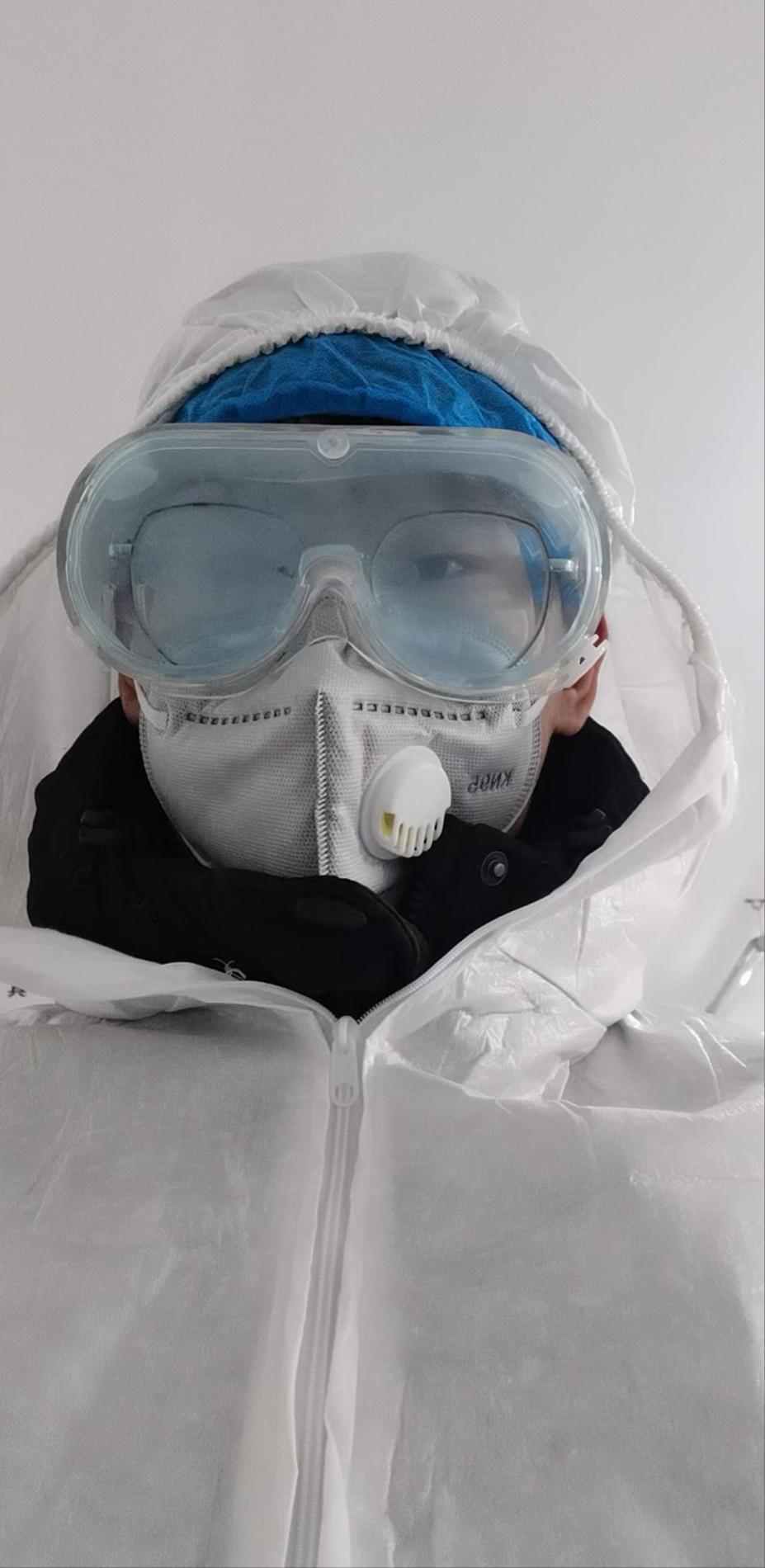 我们首先与社区人员取得联系,在做好自身防护的前提下,小组成员王清圆帮助配合社区为居民做核酸检测,由于面部护具很多,整个过程面部一直受磨损,摘下后出现勒痕,但王清圆毫无怨言。成员张硕负责对社区出入人员进行体温检测,体温检测是社区人员健康的保证。