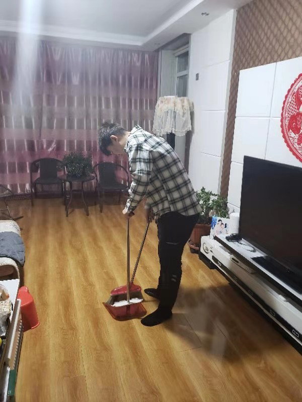 成员李鑫,龚亚文不方便外出便在家中帮助家人做家务,响应非必要不外出号召。大家各尽自己所能,积极配合着紧张的疫情防控工作。