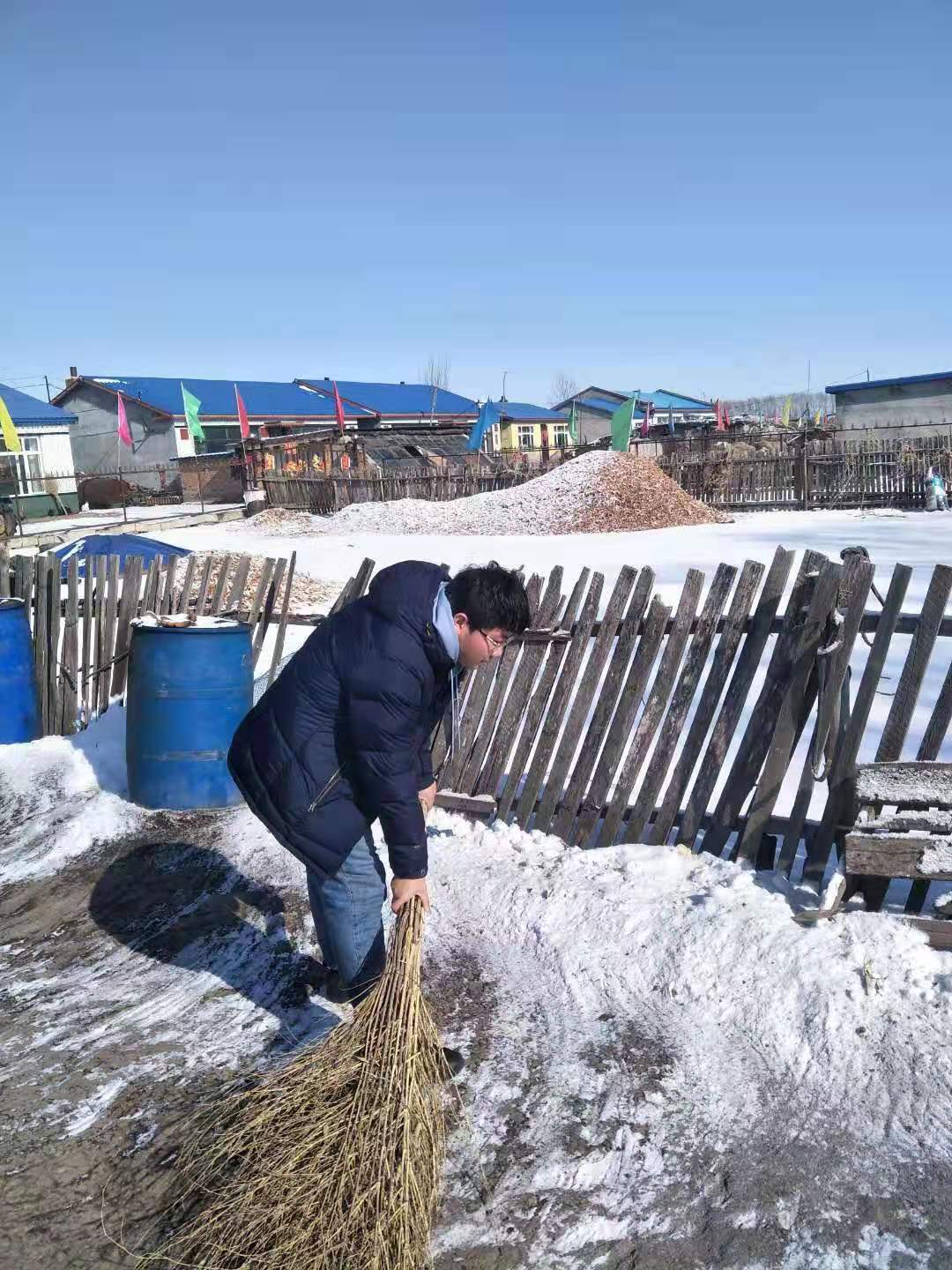 小组成员兵分两路,张海鑫、姚宇航在农村,清理道路上的垃圾;张再新、彭丽丽在县城,进行社区内人行道的清扫工作。