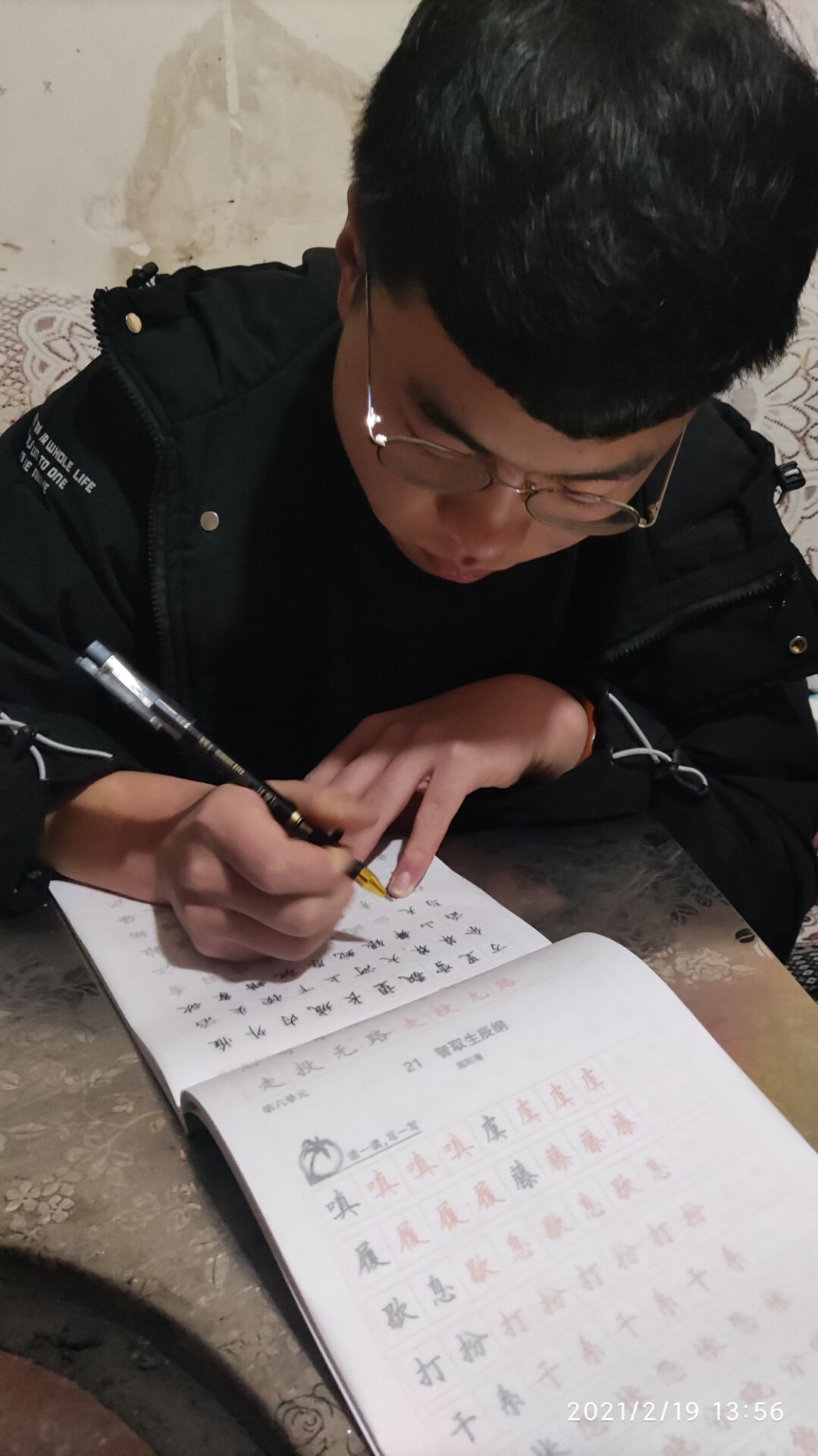 在寒假之际疫情期间,为了培养学生正确书写汉字的基本能力,巩固识字教学的成果,培养学生热爱祖国语言文字的情感;陶冶情操,培养审美能力;养成认真细心的学习态度和良好的意志品格,齐齐哈尔工程学院JZ-GY039组本周开展了字帖书写活动报告。字帖书写活动由组长张晓鹏组织,参与成员有电科201班李贤乐,土木201班张晓鹏,英语201班唐章磊以及英语201班文乾尧。在活动过程中,组员们显得格外积极,认真的进行着汉字书写,一笔一画的书写下每一个汉字。