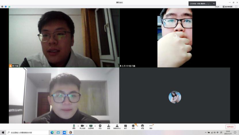 因为疫情的原因,我们小组只能在QQ视频中进行探讨研究,我们将先前收集并整理的材料进行汇总,并通过网络查询一些与论文相关的资料,对绿色建筑材料在施工中的应用有了进一步的了解。第一篇论文已经基本完成,等待最后的完善与发表。为了更好的完成第四学期任务我们通过腾讯会议视频电话进行联系,论文编写过程中遇到的问题也能及时通过电话和QQ消息解决。通过这一周组员们的积极配合解决问题。