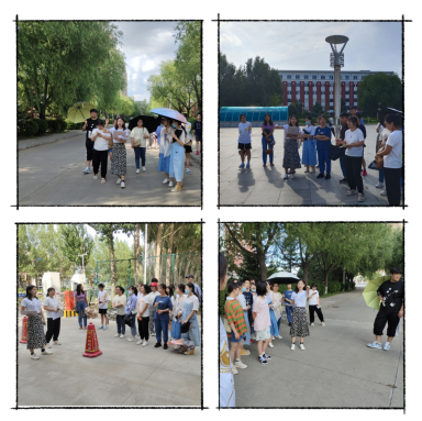 对同学思路及设计方案进行审阅后,就其中的一些设计问题,如校庆景观景点位置摆放、校园景观修复、校友游览路线等等,于7月6日下午,专业指导老师王薇老师带领团队成员对学校景观情况进行实地勘测调研。此次调研从学校北门起,沿车行大道开始调研。对于同学们的游览路线进行游走,同时解决景观修复,景观节点设计等一系列问题。如,在车行大道上方可以设置小彩旗或者拉花等进行装饰设计成一个纵深景观;在明德广场摆放临时组合花坛;在桃李院的廊架上挂置小竹牌设计为网红打卡点等等。