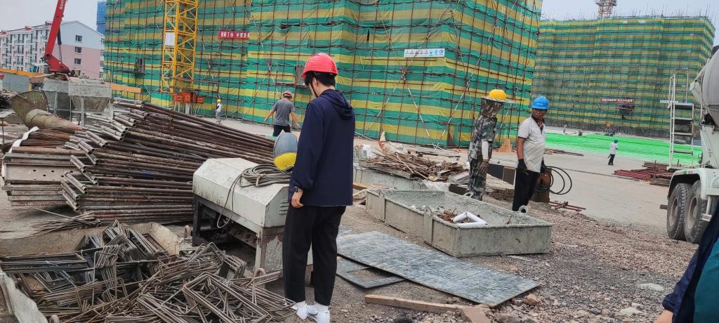 本周的工作任务主要是每天跟着师傅到施工现场进行巡视,对于发现的安全隐患或工人施工不规范操作要及时责令采取措施整改,由于正值雨季,现场临时用电线路要保证绝缘性良好,电源开关箱要有防雨设施。这周还跟师傅去现场验筋,包括剪力墙竖向钢筋何时在外边,水平筋怎么锚固,箍筋的接头应沿柱子立筋交错布置绑扎,箍筋与立筋要垂直,绑扣丝头应向里。绑扣相互间应成八字形,箍筋弯钩尺寸应满足135度,弯钩平直长度不少于10d,且不少于75mm,弯钩尺寸应满足135度,现场拉钩加工成90度。一般钢筋锈蚀需要进行除锈,这些都是书本上没有学到过的知识,也正是我们要实习的目的,那就是将理论和实践相结合。