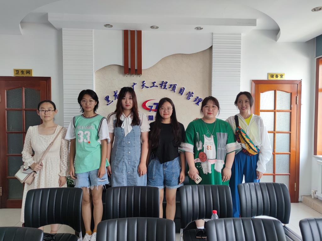 小组成员郑召玉、田可心、唐铭雪、董宇航在黑龙江广天工程项目管理有限公司进行第三学期,我们实习的职位是内业员。由于我们工作经验有限,师傅给我们安排了查找投资方材料的工作。任务看起来很简单,但是实际上需要我们拥有很好的沟通能力和人际交往能力,并具有足够的耐心与细心。我们需要搜集并了解对方的资料后与其进行合作沟通。因为没有接触过此类工作,缺少实习经验。但我们的师傅经常会给我们帮助,他也是学校土木11级毕业生,对于他的学妹,他总是耐心指导。我们也非常刻苦,经过我们孜孜不倦的从失败和教导中吸取教训,逐渐从一开始的不懂说什么到现在的沟通游刃有余,同时在记录和查找资料的真实性和规范性也得到了很大的提高,挫折虽然狠狠的给了我们一记耳光,但也强劲有力的督促着我们成长。