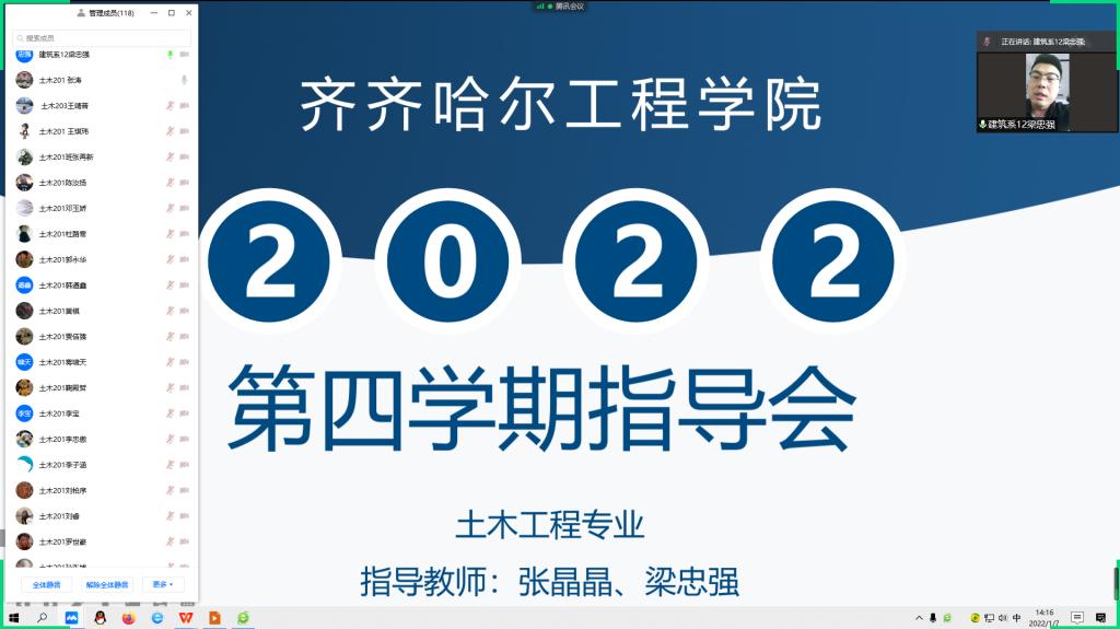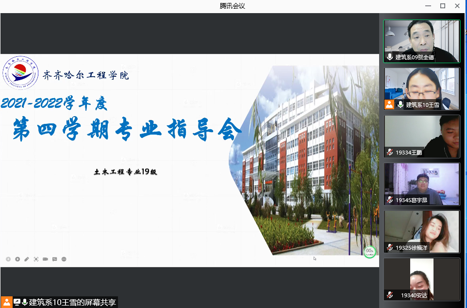 为迎接即将开始的第四学期,1月8日下午土木工程专业对不同年级的学生使用腾讯会议组织召开了第四学期专业指导会。贺全德和王雪老师负责2019级学生专业项目的指导,张晶晶老师和梁忠强老师负责2020级学生专业项目的指导。赵玖香、张巍、李迈蒲老师负责2021级学生专业项目的指导。