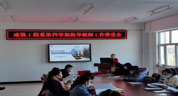为更好地落实2021-2022学年度第四学期指导工作,丰富学生的社会阅历,增强学生的社会责任感和人文修养,指导学生完成好第四学期社会实践任务。2022年1月6日下午14点建筑工程系于2#2409召开2021-2022学年度第四学期指导教师工作推进会,建筑工程系党总支书记、学生工作副主任王丽萍、各专业长、辅导员以及第四学期指导教师、生涯导师参加此次会议。