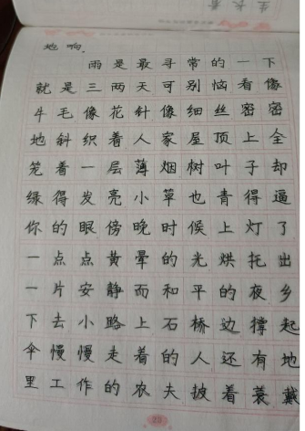 第一周,我们小组个人分别完成了以下的内容,小组组长土木191胡明秀完成了四篇钢楷,四篇书法临摹,完成了每天对学习强国的学习;组员土木191王洪迪、土木202安家辉、土木201罗世豪均完成了两篇钢楷,两篇书法临摹,对学习强国的学习。如果说学习强国的阅览让我们不出门就可以知晓国家大事,那么练字讲究的就是另一种知识的获取,所以我们把练字安排在每一天的生活中,在没有电子设备的情况下静下心来的练字,这段时间不仅可以让我们的眼睛得到休息,也培养了我们的耐心,接下来的学习我们会保持这一周的学习状态,认真完成第四学期。