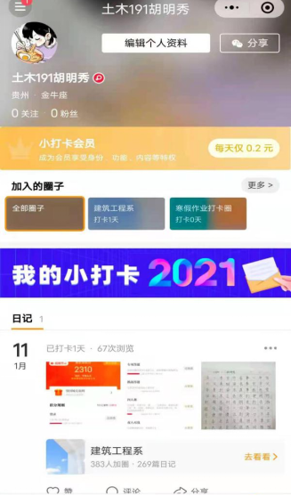2022年1月13日,是学院的第四学期开始进行的第一周。对于我们来说第四学期已经很熟悉了,因此我们小组根据近期疫情发展趋势进行了合理的计划,坚持每天完成部分第四学期手册上的内容并在小程序上打卡,小组的成员都很积极。指导老师崔晓东老师也经常在群里给我们指导并加油,带我们的大四学姐井伊楠也非常负责,一切都开展的很顺利。