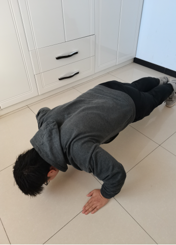 疫情当下,强健体魄尤为重要,虽然我组同学均处于低风险地区,为了同学的安全考虑以及系内意见,我组四位同学均以俯卧撑和平板支撑的形式进行居家体育锻炼,强健体魄的同时也保证了自身安全。